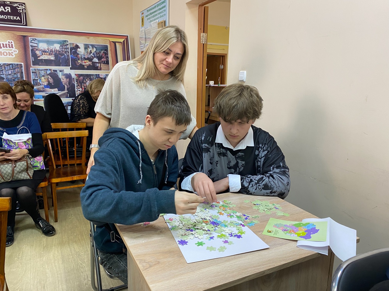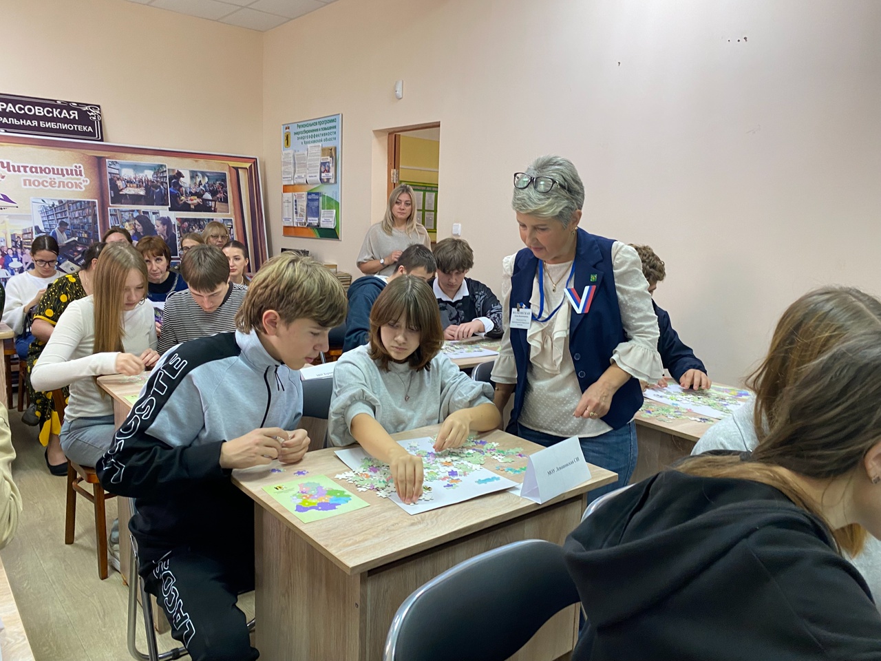 Некрасовская центральная библиотека на один день превратилась в арену для интеллектуальных баталий. Здесь по инициативе председателя окружной избирательной комиссии Елены Валентиновны Волконской прошел чемпионат по скоростному сбору пазлов. Но не простых, а в виде карт избирательных округов Ярославской области! Помериться силами в этом нестандартном соревновании собрались команды старшеклассников со всего Некрасовского округа.